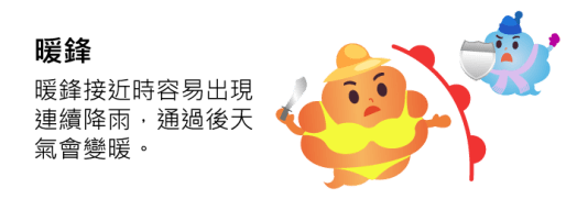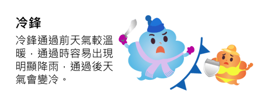 中央氣象局是很有參考價值的網站-先介紹他的遊樂區 https://edu.cwb.gov.tw/PopularScience/index.php/kids/weather遊樂區裡面跟課本一樣-有氣團與鋒面 和颱風